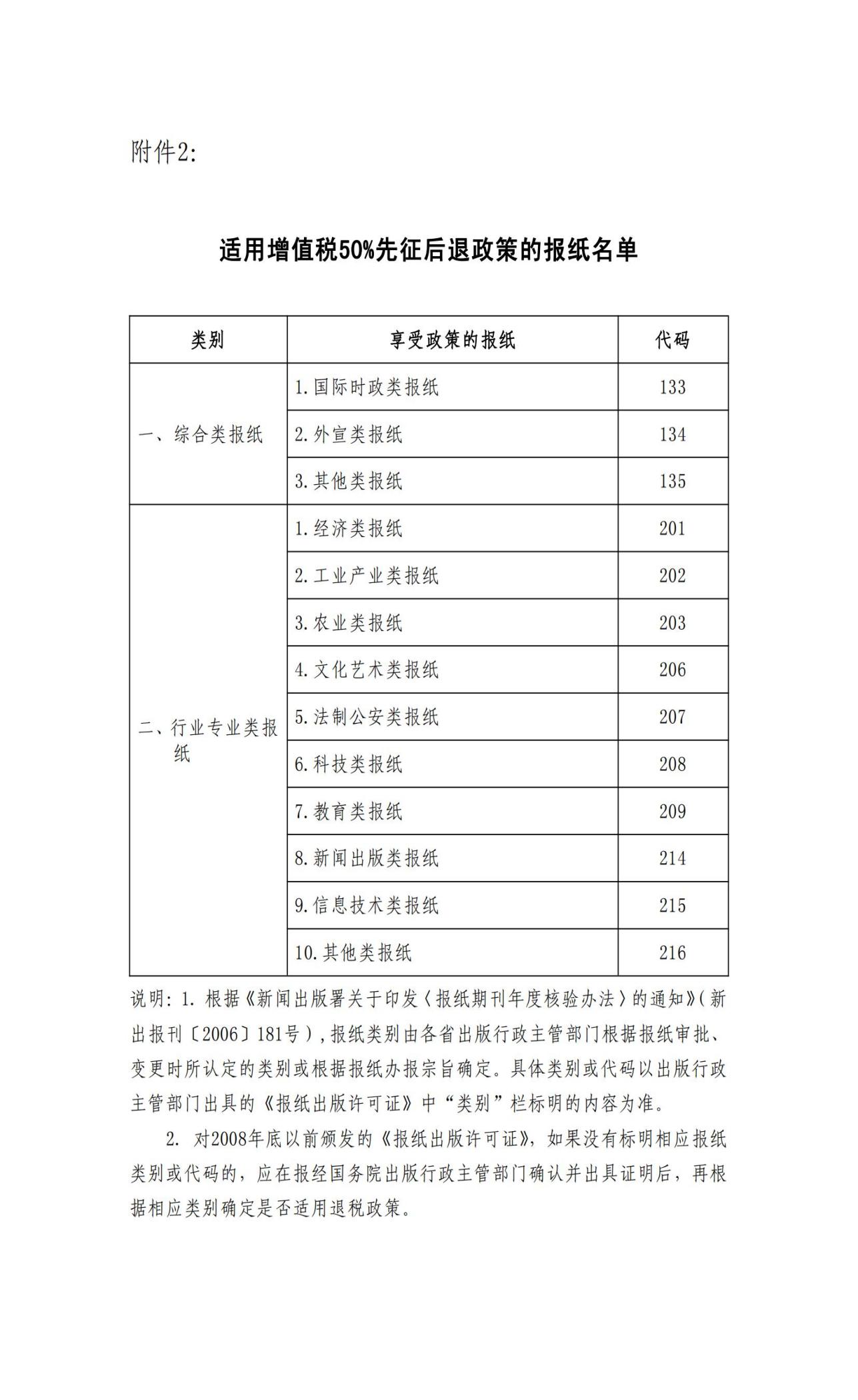 2.適用增值稅50%征后退政策的報紙名單