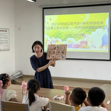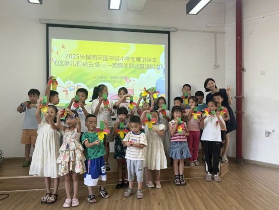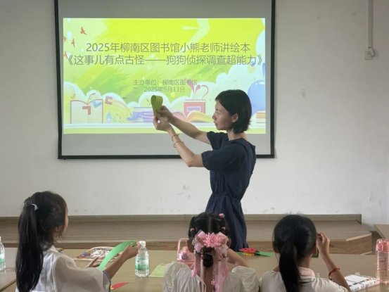9 月 13 日上午,柳南區圖書館三樓 302 培訓室里,笑聲與期待交織,備受小朋友喜愛的 “小熊老師講繪本” 活動準時開啟。這一次,小熊老師帶著趣味十足的繪本《這事兒有點古怪 —— 狗狗偵探調查超能力》,為孩子們編織了一場充滿好奇與探索的奇妙旅程。