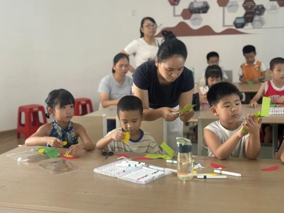 繪本故事結束后,充滿趣味的手工環節緊接著展開。在老師的耐心指導下,孩子們拿起剪刀、彩筆,小心翼翼地裁剪、折疊、拼貼。不一會兒,圓圓的翅膀、鮮艷的斑點逐漸成型,一只只靈動的 “七星瓢蟲” 慢慢誕生。當孩子們輕輕晃動手中的作品,看到 “七星瓢蟲” 仿佛真的在手心 “撲騰” 時,培訓室里瞬間響起陣陣驚喜的歡呼聲,一張張稚嫩的臉上寫滿了成就感。